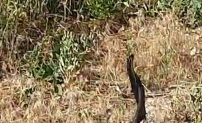 Malatya’da kayısı bahçesinde dans eden iki yılan, ilginç görüntüler oluşturdu.