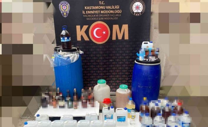 Kastamonu kent merkezi ve Pınarbaşı ilçesinde 6 ayrı adrese düzenlenen eş zamanlı operasyonda şüpheli şahısların ev ve iş yerlerinde arama yapıldı. Yapılan aramalarda 518 litre sahte alkol, 73 şişe sahte bandrollü alkol, 12 çeşitli aroma ve alkol kiti, 100 gram esrar ile 1 adet ruhsatsız tüfek ele geçirildi.