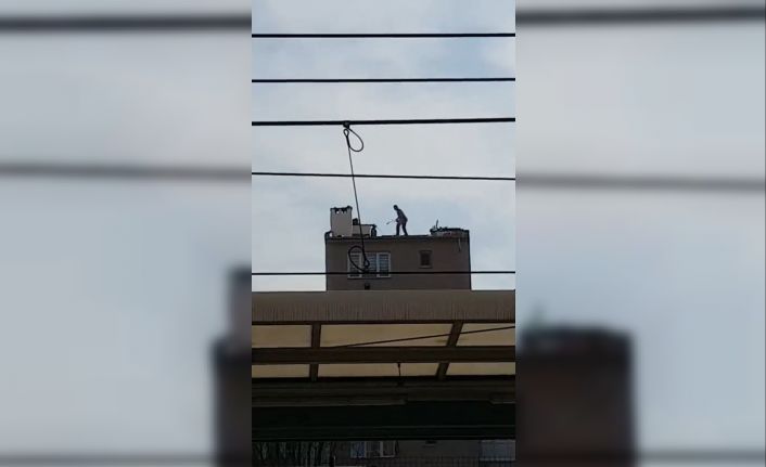 Olay Yıldırım Gökdere Mahallesinde meydana geldi. Çatı tamiratı yapan iki kişi, bellerine bağladıkları halatla çatıda adeta ölüme meydan okudu. Çatıda kimi zaman yatarak, kimi zaman da tehlikeli şekilde yürüyerek tamir yapan şahısları yoldan geçenler korku dolu gözlerle izledi. Uzun süre çatıda tamir işlemine devam eden iki şahıstan biri çatının en uç noktasına kadar geldikçe yürekler ağızlara geldi. O ânlar ise cep telefonu kamerasıyla kaydedildi.
