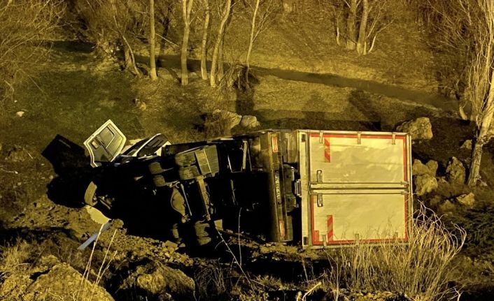 Burdur-Antalya karayoluna Büğdüz istikametinden yokuş aşağı inerken virajı alamayan kamyonun bariyerleri kırarak şarampole uçması sonucu 1 kişi yaralandı.