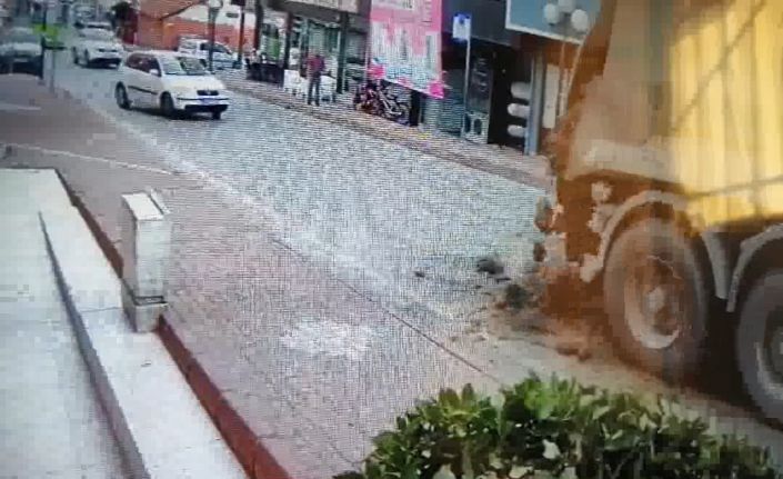 Öte yandan çamur yüklü hafriyat kamyonunun kayma anları ise bir iş yerinin güvenlik kameralarına yansıdı. Görüntülerde cadde ilerleyen tır yokuştan çıkmaya çalıştığı sırada kayarak geri geri sürüklenmeye başlıyor. Kayan tır, arka tekeri kaldırıma çarpması neticesinde dururken, dorsesindeki çamur ise yola saçılıyor. Tırın arkasından ilerleyen diğer araçlar ise kayan tırı görünce geri manevra yaparak ezilmekten kurtuluyor.