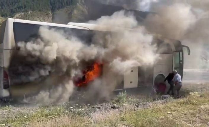 Erzurum’un Oltu ilçesinde yolcu otobüsü yolda seyir halindeyken alev aldı. Yangında can kaybı yaşanmaması sevindirirken, otobüs kül oldu.