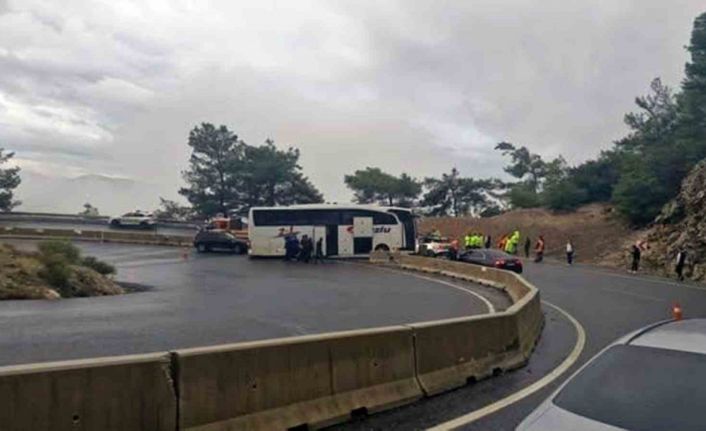 Kara yolunu ikiye ayıran bariyerlere de çarpan otobüs, yolun ortasında durabildi. Kaza nedeniyle otobüste ve polis aracında maddi hasar oluşurken, kaza sonrası yol kısa süreliğine tek şeritten verildi.