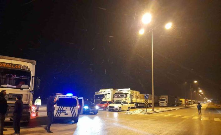 Konya’nın Kulu ilçesinde kar yağışı ve tipi sebebiyle ulaşıma kapatılan karayolunda bekleyen araçlardaki vatandaşlara çorba ikramında bulunuldu.