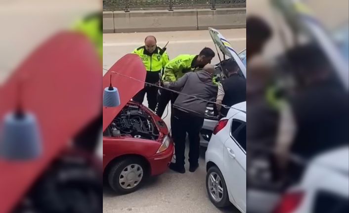 Bilecik’te seyir halinde aküsünde bir sorun oluşan sürücünün imdadına trafik polisleri yetişti. Polis aracından şahsın aracına akü takviyesi yapan polisler takdir topladı.