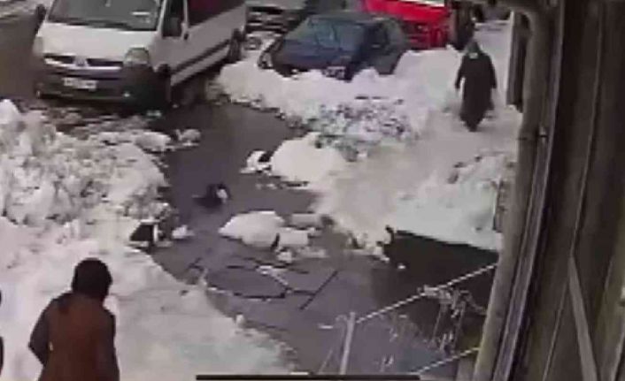 Arnavutköy’de geçtiğimiz günlerde iddiaya göre bir binanın çatı temizliği esnasında bir kadının üzerine kar kütlesi düştü. Kadın yere yığılırken o anlar kameraya yansıdı.