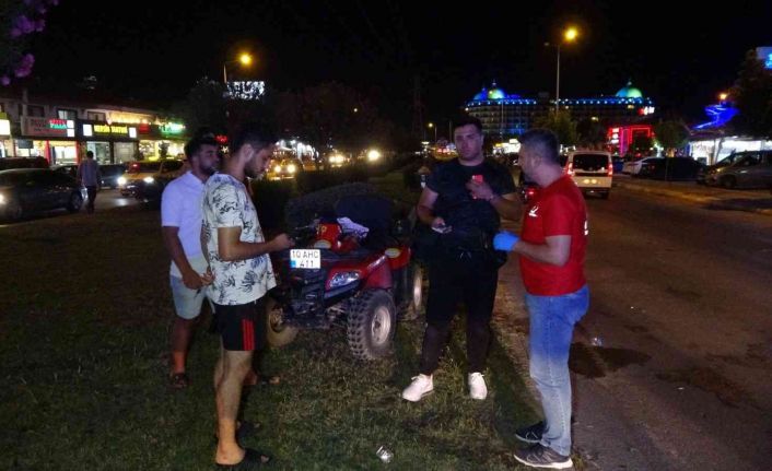 Yolda yaklaşık 30-40 metre sürüklenen ATV’nin sürücüsü kazayı hafif sıyrıklarla atlatırken, ATV’de yolcu olarak bulunan arkadaşı Metin Fatih Kavukoğlu yaralandı. Yardımına çevredeki esnafların ve turistlerin koştuğu yaralı, sağlık ekibinin olay yerindeki müdahalesinin ardından hastaneye kaldırıldı.