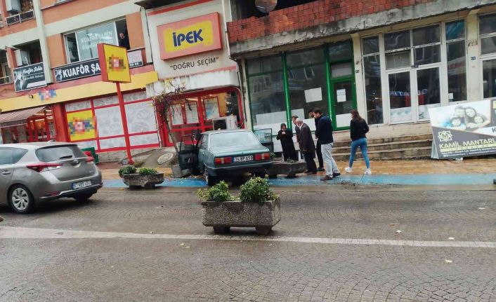 Zonguldak’ın Çaycuma ilçesinde kontrolden çıkan otomobil, markete girmesine ramak kala saksılara çarparak durabildi. Faciadan kıl payı dönülen kaza maddi hasarla atlatıldı.