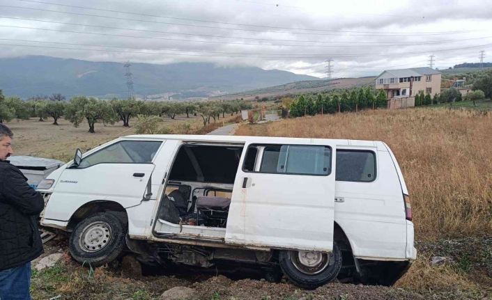 Manisa’nın Soma ilçesinde sürücüsünün direksiyon hakimiyetini kaybettiği minibüs yolun sağına devrildi. Minibüste bulunan 4 kişi yaralanarak hastanede tedavi altına alındı.