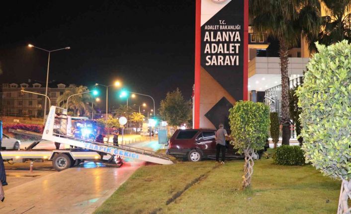 Kaza, Alanya ilçesi D400 karayolu üzerinde meydana geldi. Edinilen bilgilere göre 07 NC 828 plakalı otomobil ile seyir halinde olan ismi öğrenilmeyen sürücü direksiyon hakimiyetini kaybederek yoldan çıktı. Adliye bahçesinde ağaçları deviren otomobil adliyenin totem tabelasına çarparak durabildi. Çevredeki vatandaşların ihbarı üzerine bölgeye polis ve sağlık ekipleri sevk edildi. Vatandaşlar tarafından sıkıştığı yerden çıkarılan yaralı sürücüye sağlık ekipleri tarafından ilk müdahalede bulunuldu. Alanya Eğitim ve Araştırma Hastanesine kaldırılan sürücünün sağlık durumunun iyi olduğu öğrenildi. Hurdaya dönen otomobil çekici tarafından kaldırıldı.