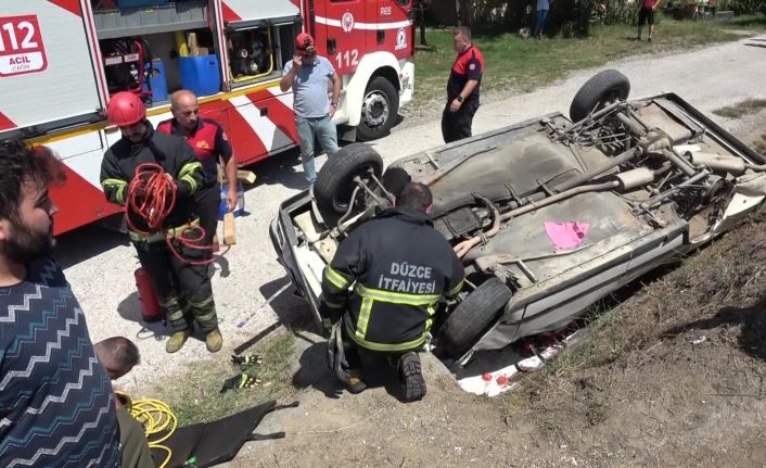 Kaza Düzce Bahçeşehir mevkiinde meydana geldi. Edinilen bilgilere göre Demetevler istikametinden Düzce kent merkezi istikametine gitmekte olan Yasemin K. idaresindeki 26 ADN 092 plakalı Tofaş marka otomobil, sürücüsünün direksiyon hakimiyetini kaybetmesinin ardından yan yola düşerek ters döndü. Kazayı görenlerin ihbarı üzerine bölgeye Düzce Belediyesi İtfaiye Müdürlüğü ekipleri sevk edildi. Sürücü ve yanında yolcu olarak bulunan Elif A., itfaiye ekipleri tarafından çıkartıldı. kazada yaralanan sürücü ile yolcuya ilk müdahale sağlık ekipleri tarafından olay yerinde yapıldı. İlk müdahalesinin ardından tedavileri için Düzce Üniversitesi Hastanesi Acil Servisi’ne kaldırıldı. Polis ekipleri kaza ile ilgili inceleme başlattı.Yoldan çıkan otomobil ters döndü: 2 yaralı