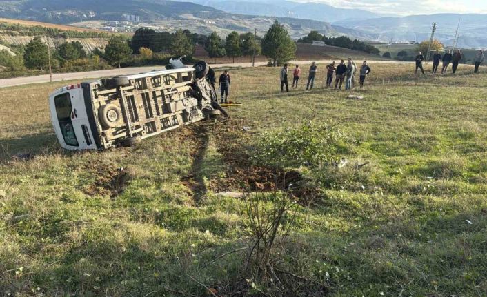 Karabük’te yoldan çıkarak ağaca çarptıktan sonra şarampole devrilen minibüsün sürücüsü yaralandı.