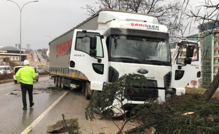 Olayı gören Fatih Şahin, tırın yoldan çıkarak karşı şeride geçtiğini otomobile çarparak durabildiğini söyledi.