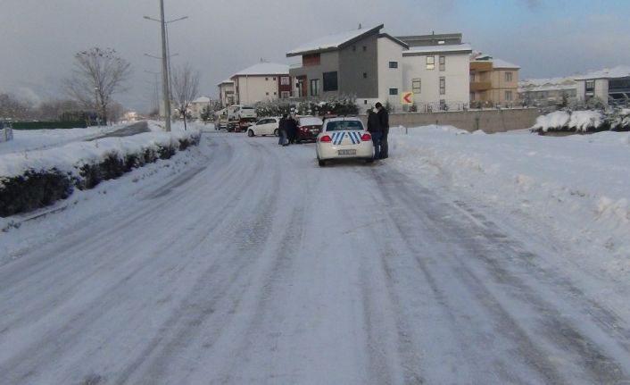 Bursa’nın İnegöl ilçesinde karla birlikte yollarda buz pistine döndü. Çok sayıda araç kaza yaptı.