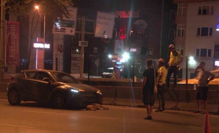 Kadıköy’de E-5 kara yolundan karşıya geçmeye çalışan köpek, otomobilin çarpması neticesinde telef oldu.