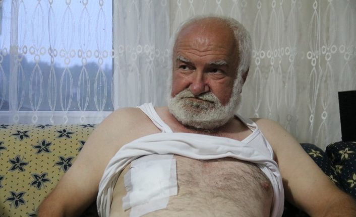 Olay anını saniye saniye anlatan yaralı Şükrü Erbaş ilk olarak bir ses duyduğunu ve tişörtün içerisindeki gözlüğün kırılarak kendine battığını zannettiğini dile getirerek “Dün sabah saatlerinde temizlemek için bahçeye gittim. 1-2 saat çalıştıktan sonra sağ göğsümün üstüne çat diye bir ses duydum. Gözlüğüm koynumdaydı, tişörtümün içerisine koymuştum. Onun camının patladığını hissettim ve göğsümde de bir ağrı oldu. Gözlüğü çıkartıp baktım ki camında bir şey yok. Tişörtüme baktım felaket bir kan var. Vurulduğumu hissettim. İnce bir ses olduğu için susturucuyla vurulduğumu sandım. Dedim bir tane atan bir tane daha atar herhalde bir iki dakika bekledim. Dışarıdan göğsümü tutarak yürüdüm. Ben aynı zamanda da kalp hastasıyım. Yolu olmayan çokta çukur bir yerdeyim. Yavaş yavaş vurulmayı unuttum da yolu düşündükçe kalbim sıkışmaya başladı” dedi.