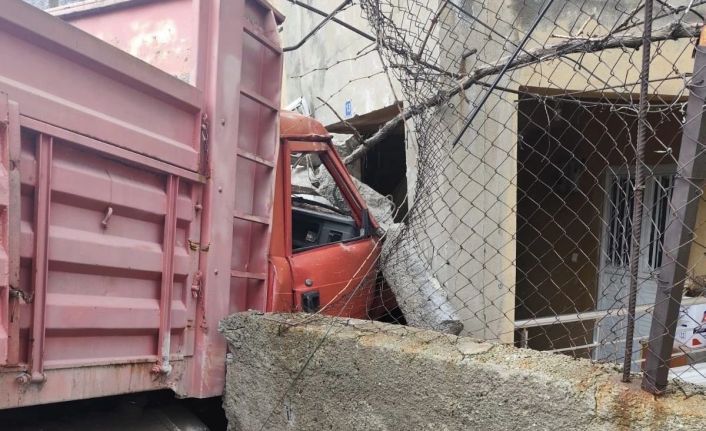 Yük kamyonu duvarı aşıp eve daldı