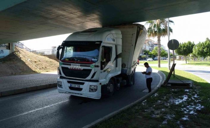 Yüksekliği hesap edemeyen tır sürücüsü alt geçitte sıkıştı