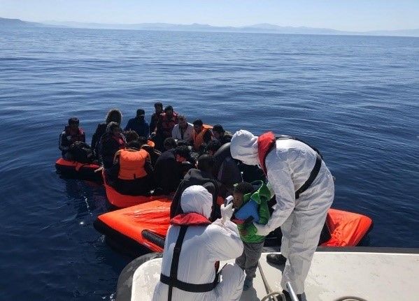 Öte yandan, sığınmacıların kurtarılma anına ait yayımlanan görüntülerde, Türk ekiplerinin korona virüs (Covid-19) salgını dolayısıyla beyaz tulumlar giydiği ve kurtarılan sığınmacıların tek tek ateşleri ölçülerek Sahil Güvenlik Botu’na alındıkları görünmekte.