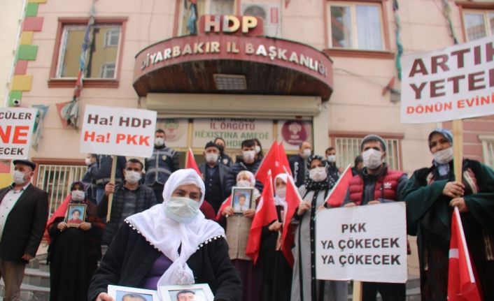 Çocuklarının terör örgütü PKK mensupları tarafından dağa kaçırıldığı iddiasıyla HDP Diyarbakır İl Başkanlığı önünde başlatılan evlat nöbeti eylemine 2 çocuğu teröristler tarafından dağa kaçırılan 78 yaşındaki anne de katıldı. Yürümekte zorluk çeken acılı anne, çocuklarını almadan eylemden vazgeçmeyeceği mesajını verdi.