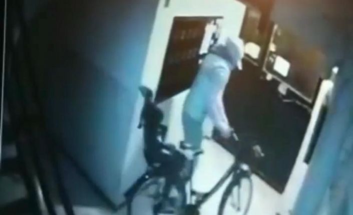 Tunalı Mahallesi Kocakır Sokak’ta meydana gelen olayda, kimliği tespit edilemeyen bir şahıs, zorlayarak kapısını açtığı apartmana girdi. Güvenlik kameralarına anbean yansıyan olayda, şapkayla yüzünü gizleyen şüpheli, apartman girişinde duran bisikleti çaldı. Çocuk koltuğu takılı olan bisikleti alarak apartmandan çıkan şüpheli, hızla uzaklaştı.