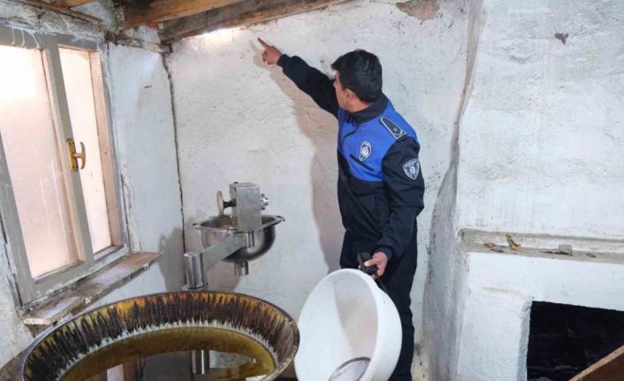 Daha önce güvercin kümesi olarak kullanan depo, ruhsatsız faaliyet ve hijyen şartlarına aykırı gıda üretimi yapmaktan dolayı mühürlenerek ticaretten men edildi. İşyeri sahibine ise koku, çevreyi kirletme ve ruhsatsız işyeri açmaktan ceza kesildi.