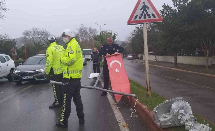 Kdz. Ereğli ilçesinde dün sabah saatlerinden itibaren etkili olmaya başlayan şiddetli rüzgar ağaçların dal ve yapraklarını yollara savurdu. Fırtına ile birlikte vatandaşlar yürümekte zorlanırken, elektrik direklerinin yıkıldı. İlçeye bağlı Orhanlar Mahallesi Atatürk Bulvarı üzerinde bulunan elektrik direği rüzgar nedeniyle yıkıldı. Olay yerine gelen polis ekipleri yolda güvenlik önlemi alırken, enerji dağıtım kurumuna ait ekipler de bakım onarım çalışması yaptı.
