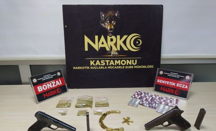 Kastamonu İl Emniyet Müdürlüğü Narkotik Suçlarla Mücadele Şube Müdürlüğünce gerçekleştirilen 2 ayrı operasyonda, 23,96 gram metamfetamin, 0,48 gram skunk, 41,34 gram bonzai, 78 adet reçeteye tabi hap, 2 adet ruhsatsız tabanca, 2 adet şarjör, 28 adet tabanca fişeği ele geçirilirken, olay ile ilgili 4 şüpheli şahıs çıkarıldıkları mahkemece tutuklanarak cezaevine teslim edildi.