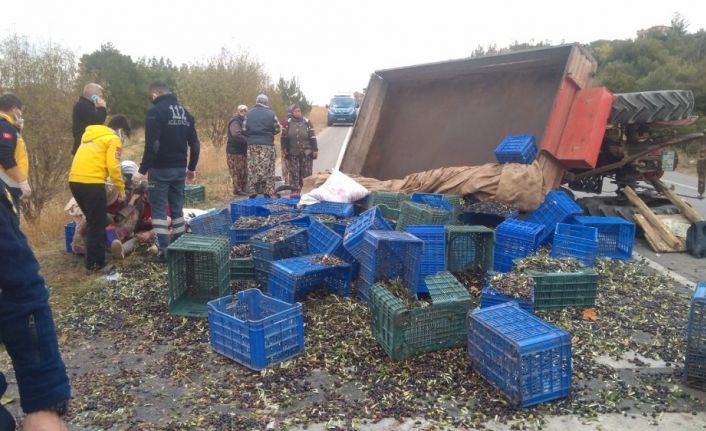 Zeytin işçilerini taşıyan traktör devrildi: 5 yaralı
