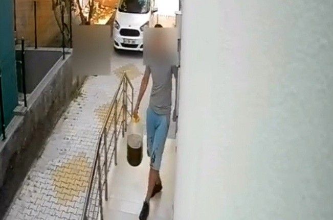 Osmaniye’de bir apartmanın bodrum katında bulunan zeytinyağını yanında getirdiği bidona doldurup çalan hırsızlık şüphelisi şahıs önce kameralara, ardından polise yakalandı.