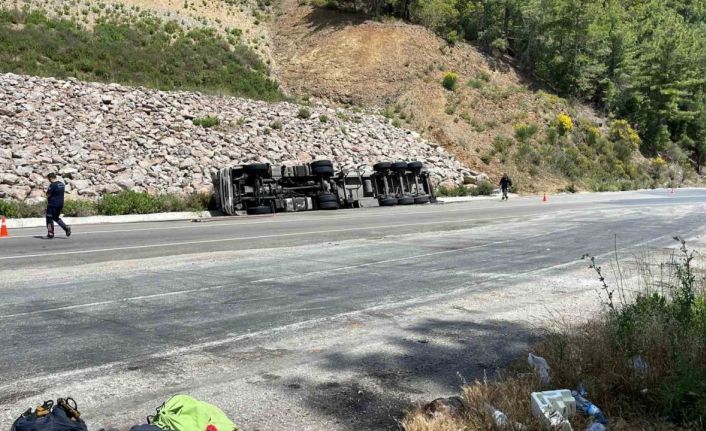 Antalya’nın Gazipaşa ilçesinde zift yüklü tankeri taşıyan tırın devrilmesi sonucu meydana gelen kazada, tır sürücüsü yaralandı. Kaza sonrası araçta çıkan yangın itfaiye ekiplerince söndürüldü.