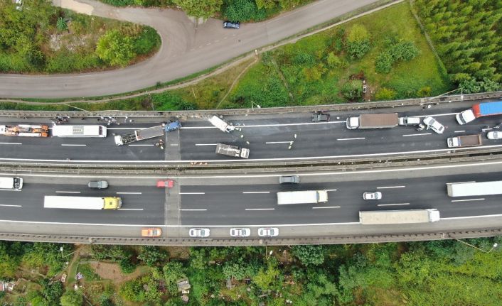 Kaza, 16.00 sıralarında Kocaeli’nin İzmit ilçesi TEM Otoyolu Çınarlıdere Viyadüğü’nde meydana geldi. Edinilen bilgilere göre, İstanbul istikametinde seyir halindeki sürücüsü öğrenilemeyen 34 EA 7101 plakalı kamyonet, yağmur sebebi ile kayganlaşan yolda, kontrolden çıkarak yan yattı. Kaza sonrasında, aynı istikamette seyir halinde olan ve aralarında yolcu otobüsünün de olduğu 8 araç duramayarak birbirine girdi. Kazada araçlarda bulunan 4 kişi yaralandı. Olay yerine gelen sağlık ekipleri tarafından ilk müdahaleleri yapılan yaralılar, çevredeki hastanelere kaldırıldı. Kaza sebebi ile trafiğe kapanan İstanbul istikametinde kilometrelerce uzunlukta araç kuyruğu oluştu. Olay yerine gelen polis ekipleri tarafından yapılan incelemelerin ardından kazaya karışan araçların kaldırılması için çalışma başlatıldı.