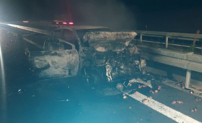 Edinilen bilgiye göre İstanbul istikametinden İzmir istimaketine seyir halinde halinde giden 34 BYC 499 plakalı araç sürücüsü C.A. Ömerköy mevkinde A.Y. idaresindeki 02 AHH 954 plakalı kamyonete arkadan çarptı. Çarpmanın şiddetiyle yola savrulan 34 BYC 499 plakalı araç yanmaya başladı. Kazayı gören ve karşı şeritten gelen İ.B. idaresindeki 55 DD 536 plakalı araç ise kaza yapan araçlara çarpmamak için yaptığı manevra sonrası otoyol üzerindeki orta refüje ardından da kamyonete çarptı.