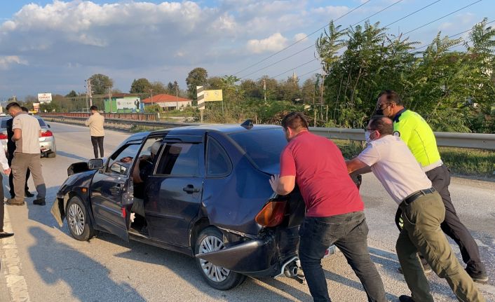 100 Karayolu Küçük Melen mevkiinde meydana gelen 3 araçlı zincirleme kazanın ardından 3 araç daha birbirine girdi.