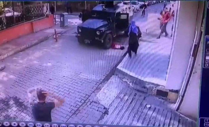 Şanlıurfa’nın Viranşehir ilçesinde aniden yola koşan kız çocuğuna zırhlı polis aracının çarptığı anlar kameraya yansıdı.