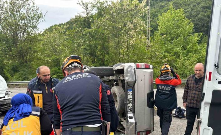 Zonguldak’ın Karaman beldesinde iki aracın çarpıştığı trafik kazasında araçlardan biri devrildi. Kazada her iki sürücü de hafif şekilde yaralandı.