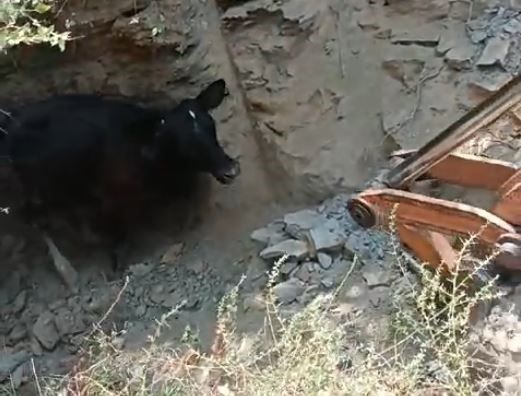 Aydın’ın Yenipazar ilçesinde 5 metrelik kuyuya düşen inek, itfaiye ekipleri tarafından kepçeyle kurtarıldı.