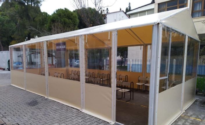 Aydın Devlet Hastanesi Kovid-19 Tanı Ünitesi girişine bekleme alanı oluşturuldu.