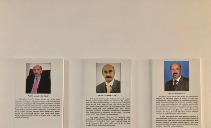 Prof. Dr. Ali Önder Karaoğlu, Prof. Dr. Turgay Aktunç ve Prof. Dr. Mustafa Selim Özkök’ün özgeçmişlerini içeren fotoğraflar hastane koridoruna asıldı.