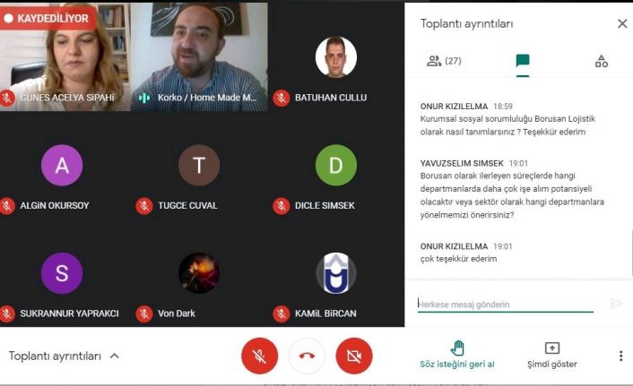 Firmanın sağladığı staj ve kariyer gelişim yollarından da bahseden Korukluoğlu, lojistik sektörünün geniş kapsamlı yapısıyla yeni mezunlara pek çok farklı alanda işler sağladığını aktardı. Korukluoğlu, öğrencilerden gelen yeşil lojistik, kurumsal sosyal sorumluluk, dijitalleşme ve güncel problemlerle ile ilgili sorulara da şirketlerinin örnek uygulamaları üzerinden cevap verdi.