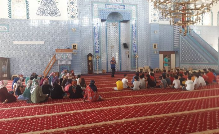 Afet ve Acil Durum Yönetimi Başkanlığı (AFAD) Aydın İl Müdürlüğü tarafından Aydın’da Yaz Kur’an Kurslarına katılan çocuklara ve cami cemaatine afet farkındalık eğitimi veriliyor.
