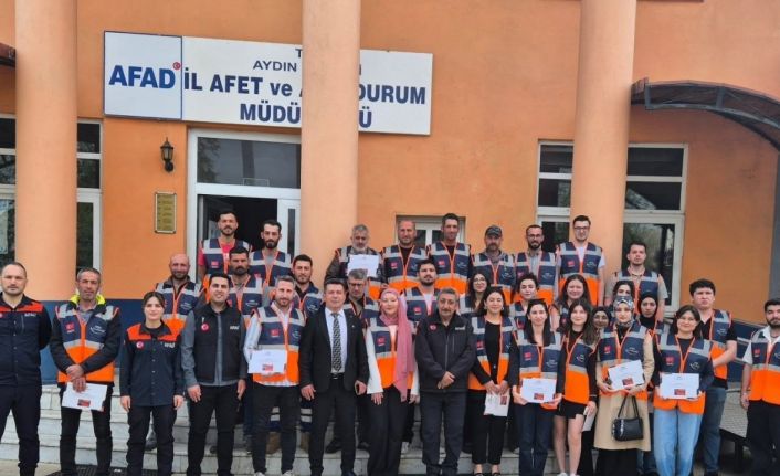 Aydın’da AFAD Destek Gönüllü Eğitimlerini başarıyla tamamlayan gönüllülere sertifikaları ve kimlik belgeleri düzenlenen törenle teslim edildi.