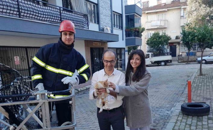 Aydın’ın Efeler ilçesinde çam ağacında mahsur kalan kedinin imdadına Aydın Büyükşehir Belediyesi İtfaiye Daire Başkanlığı ekipleri yetişti.