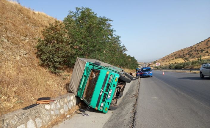 Aydın’ın Çine ilçesinde meydana gelen trafik kazasında iddiaya göre alkollü sürücünün kullandığı kamyonet yoldan çıkarak devrildi.