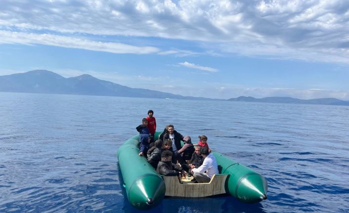 Aydın’ın Kuşadası ilçesi açıklarında lastik bot içerisindeki 13 düzensiz göçmen kurtarıldı.