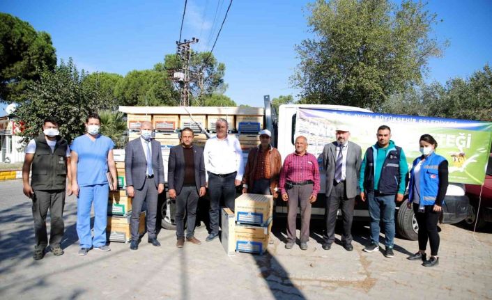 Hibeler Aydın’ın 17 ilçesinde 100 ve altında kovanı olan üreticilere yapılırken, dağıtımlara katılan Aydın Büyükşehir Belediye Başkanvekili Barış Altıntaş ise şunları söyledi;