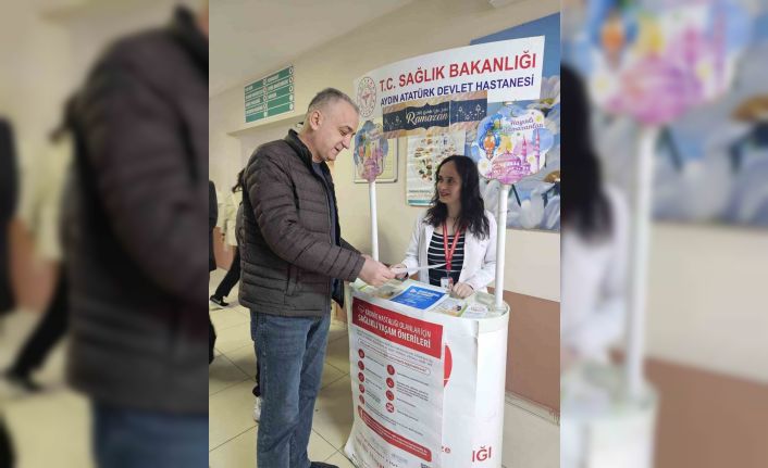 Aydın Devlet Hastanesi’nde Ramazan ayı boyunca sürecek program kapsamında sağlıklı beslenmeden organ bağışına kadar birçok başlıkta vatandaşlara bilgilendirme yapılıyor.