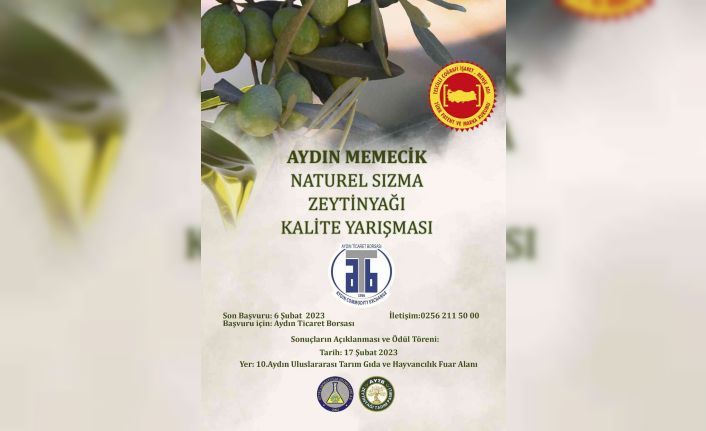 Aydın Ticaret Borsası öncülüğünde AYTB Laboratuvar Hizmetleri A.Ş. ve AYTB Zeytinyağı Tadım Paneli koordinatörlüğünde her yıl düzenlenen Aydın Memecik Naturel Sızma Zeytinyağı Kalite Yarışması için başvurular başladı.