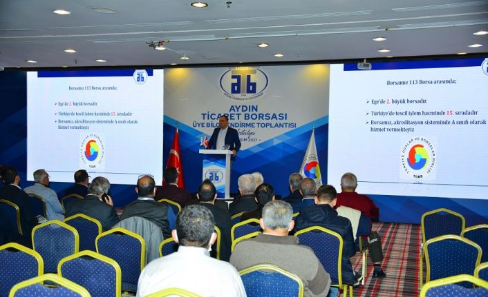 Üyelerinin talep, öneri ve beklentileri doğrultusunda faaliyetlerini sürdüren Aydın Ticaret Borsası, Aydın ve ülke ekonomisine katkı sağlayan faaliyetlerini, gerçekleştirilen ’Aydın Ticaret Borsası Üye Bilgilendirme Toplantısı’nda anlattı.