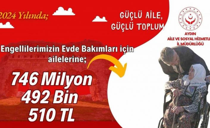 Konu ile ilgili Aydın Aile ve Sosyal Hizmetler İl Müdürlüğü tarafından yapılan açıklamada “Bakanlığımızın hizmet Modellerinden biri olan Engelli Evde Bakım ödemesi kapsamında 2024 yılında Aydın il genelinde 746 milyon 492 bin 510 TL ödeme gerçekleştirildi. İnsanı yaşat ki devlet yaşasın" ifadelerine yer verildi.
